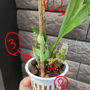 どうしたもんかとずっと眺めている、新芽3本のジョーベッツさんです…。 昨冬に水やりすぎて根腐れさせたのがまず失敗。 その後①の芽が出て嬉しくて、水やりスタートの時期が早かった(今思えば)のが2つ目の失敗(それがなければ①はもう少し大きくなれたかもしれないと思っている)。 その後バックバルブから②③の順で新芽。どの芽も、他のタケノコに比べると大きくなるスピードが遅い気がする。 で、②(4センチ)は根元の葉が茶色っぽくなり葉先は黄変し始めた。これってバルブ完成ということ?? ちなみに②から出た根は3本あるけど触ったところみんなフカフカお腐れ神っぽい。 ということは、バックバルブからのみ栄養吸収してるのよね? この小ささで完成してしまったこと&きっと今後もまたこのバルブから芽が出ることを考えると、次の新芽の栄養のために②は外しちゃったほうがいいのだろうか?とか、そんな余計なことはしない方がいいのだろうか?とか思いながら眺めている。 ③(3.5センチ)も最近成長スピードが鈍ってる気がする。 ①はリードバルブから出たけどそもそもそのリードバルブも小さかったのよね。 子どもみたいにちっちゃいバルブばかりつけた株になっちゃうかしら?? 子吹きタケノコ…😅 永遠にお花咲かなそう…