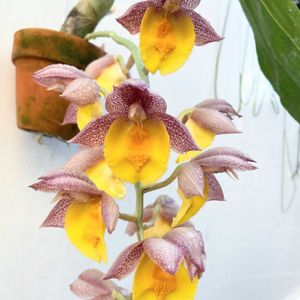 clowesia dodsoniana 去年の倍、24輪咲いてくれました。 まだブドウサイズ。キツネの尻尾ぐらい伸びるはずだし、複数花芽が出るぐらい育てないといけないですね。