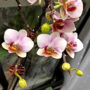 我が家で今咲いてるランたち。 ①マイクロ胡蝶蘭。ホムセンで買った子。特に名前はないけど、なんか和風を感じる色彩が気に入ってます。 ②クロウェシア グレースダン ビーバーバレー。遅れて伸びた2本目の花茎も満開に💞 ③デンドロビウムのガレッティさん。花数減ったけど、もう2カ月くらい咲き続けてる。どこにお水あげたらいいのかよくわかんなくて😅、バルブも根も花もまとめて霧吹き。