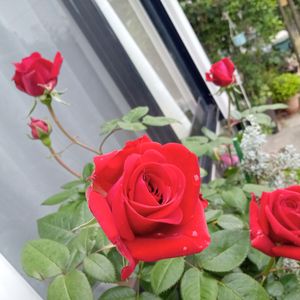 今朝の薔薇🌹 イングリッド•バーグマン♥ 真っ赤な薔薇も素敵です♥