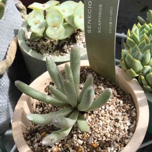 【Caputia属 スカポーサ】 Caputia scaposa Caputia scaposa (DC.) B.Nord. & Pelser 別名 スカポサ シノニム 【セネシオ属 スケイポサス】 Senecio scaposus 別名 スカポーサス 和名 新月 Gクリエイト ニムラさんの ネームタグは 【セネシオ属 スカポサス】 デットストックだったせいか? 雨ざらしだったせいか?ハゲハゲ☔ 本来、細長い葉には銀白色の 産毛のある膜が張っており、 「銀月(Caputia tomentosa)」 とよく似ています 花はキク科特有の黄色🌻 種小名scaposaはラテン語に由来、 「花茎のある」の意味 アガベにもチランジアにも、 このscaposaの名があります 南アフリカ原産🇿🇦 西ケープ州のクレイン・カルー〜 東ケープ州のケイ川に分布 セネシオ属として流通していますが、 Caputia属に変更になったかも? お詳しい方、教えて下さいませ 「総称名Caputiaは、その地理的起源をほのめかして、2012年にスウェーデン人、Bertil Nordenstam and Pieter Pelser(ベルティルノルデンスタム&ピーターペルサー)によって設立された」 ☆Source☆ 【Plant ZA frica】 http://pza.sanbi.org/caputia-scaposa