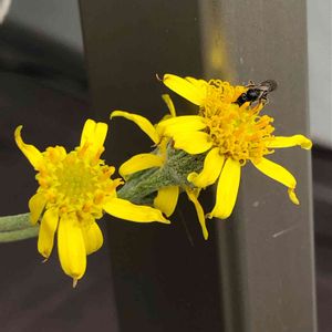 新月の花が咲きました。 キク科だけあって、見た目は小菊のようです。 ハチもやってきましたよ🐝