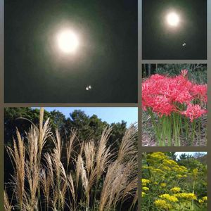 2021.9.21中秋の名月🌕 十五夜🎑🌾 何とかパチ📱✨ 月の下のポチは飛行機✈️ 見えなね(笑) ススキ🌾 ヒガンバナ・オミナエシ 秋ですね🍂🌾🍁🍂 今日も有難うございました🤗