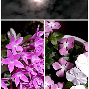 🌕十五夜 中秋の名月 厚い雲の合間から なんとか見せてくれるお月さま🎶 PM11:30 2階ベランダより📲 ⬅🌺ペンタス ➡️🌺ニチニチソウ