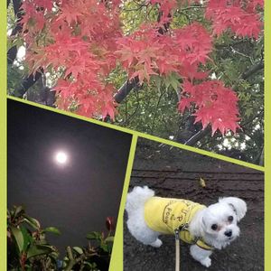 あかね広がる 見上げる先のもみじ 冷たい風にも負けず (上…紅葉すすむもみじ) okiさんの🏷コラージュ仲間達 左下…諦めていた満月🌕ミレタ〜! 右下…レオも秋支度サムイサムイ🐶💦 ワンワン祭りに参加させて下さい!