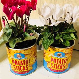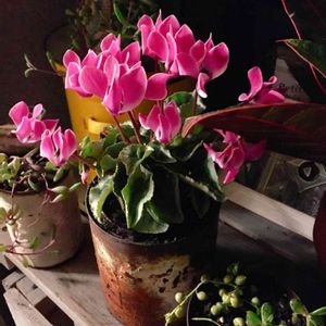 サビ缶に ガーデンシクラメン。 21時のベランダより😊