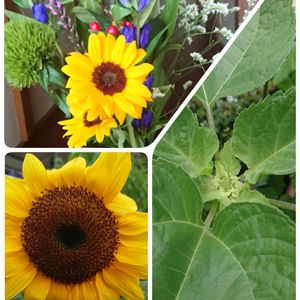 【今日のお花】 『向日葵』ひまわり 🌻🌻🌻🌻🌻🌻🌻🌻 上は仏さんのお花です‼️ 左下は昨年の花です‼️ 右は今年のですがまだ咲いていません((T_T)) 8月頃に咲くように種まきしたのでもう少しですね😅