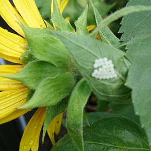 『向日葵』 🌻🌻🌻🌻🌻🌻🌻🌻 朝からごめんなさいm(__)m 向日葵の葉っぱに 虫の卵(゜ロ゜;ノ)ノ なんだ⁉️⁉️⁉️ 大きめよ‼️ これは良いこと無さそうなので 葉っぱごとさよならね‼️
