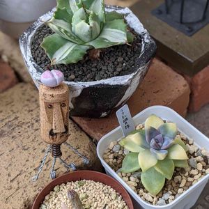 🏷錦の日 ララ紅朧月錦💗 チョンパした元の茎に薄ピンクのかわいいベビちゃんが(✪̼o✪̼) 王妃雷神さんは冬の間は家の中で育てたけれど春先に外に出したら少し葉焼けしちゃって元気がなくなったの。でもそのままこの場所で大丈夫❓と思いながら東側の玄関先に居てもらってます。一応特等席のはず🙄 この王妃雷神さんは夏には強いのかなぁ🤔