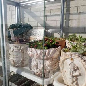 早春の大移動 4月下旬の暖かさ😆 多肉ちゃんたちを外へ運んだ。 と言っても、 油断ならないので、ガラスケースの中へ。 キラキラ眩しい海が映り込んだ。 この場所、気に入ってくれるといいなあ。