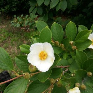 お茶の花にも似た清楚な花✨ 梅の木の隣に咲いていたので 梅干し用の梅を収穫ながら庭石の上からパチリ📸 🍋🌱🍋