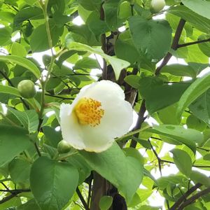 姫沙羅の花が満開に なりました。 職場近くの高級焼肉店の 樹木🌲です。 出勤途中で