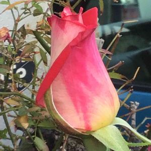 薔薇 みつえ 挿し木2年目 そろそろ鉢増し🌹 中と外のはなびらの色が違い 蕾の様子が可愛い🌹💕