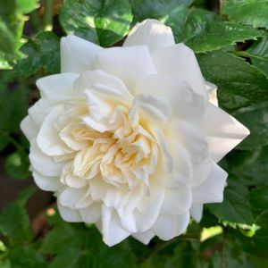 コケットロマンチカさん、再び開花しました!雨にも強く花持ちも良く、病気にも強くてとっても優秀です! おかげさまで、フォロワー数100名達成となりました!日々ご覧いただきありがとうございます!タイミングよく赤のバラのマヨルカ 、今回は白のバラのコケットロマンチカさんでの紅白の組み合わせとなりました!