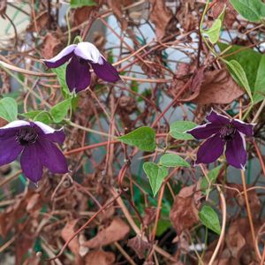 夏の間に葉っぱが枯れてしまっていたので、心配していたクレマチスですが、少しずつ緑が戻り、新しいツルも伸びだして、また花を咲かせてくれました。