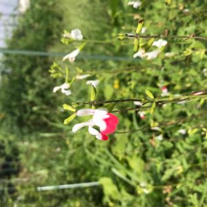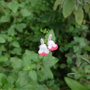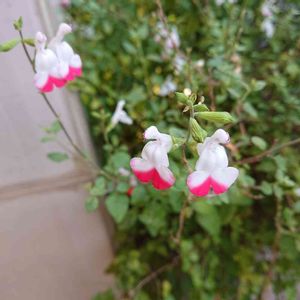 白色と赤色の鮮やかなコントラストが爽やか…セージ、青じそのようなハーブ系の香りがするこちらのお花、名前をご存知の方がいらっしゃいましたら教えていただけますでしょうか?