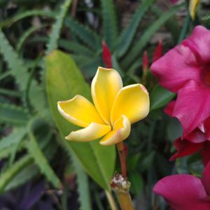 横浜赤レンガ倉庫にて…🏵 プルメリア インカゴールド購入してきました 黄色の可愛いお花に一目惚れ🧡 ちょっと高かったので迷って迷って、、、 やっぱり買っちゃいました💦 今日、tamakaraに植え直したけど鉢から出すときにうまく抜けず根を傷つけてしまったかも 大丈夫かしら?