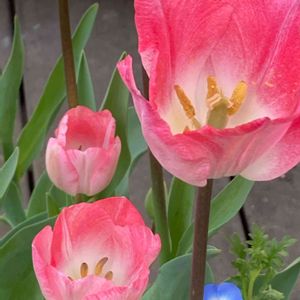 チューリップの横にひょっこり咲いているネモフィラにキュンとしました😍