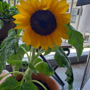 鉢に植え替えてあげたいけど、もうちょっと待ってね😅 だいぶ、ミニ向日葵ちゃんが🌼を付けてくれました💕