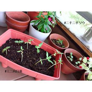種蒔きが遅れたミニ向日葵、咲くといいな(^^)