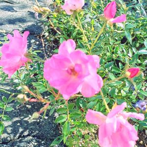 ピンクのミニ薔薇さん 花壇の手前で 咲き始めました いつも笑顔にしてくれてます ⸜( 'ᵕ' )⸝⋆︎*🩷