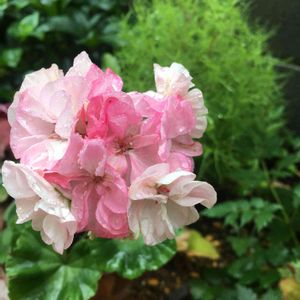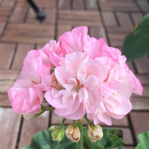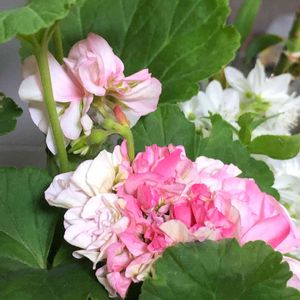 ゼラニウム ニューダブルピンク うちの子は濃いピンクもなく、うすピンク。 それはそれでかわいいけど、もっこり感が少ない。 もっとフリフリなお花咲いてほしい‼️ 栄養不足かなぁ…💦💦