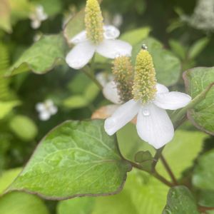 🤍ドグダミ(蕺草) ドグダミ科 ドグダミ属 茎頂に4枚の白い総包(花弁に見える部分)のある棒状の花序に淡黄色の小花を密生する(総包は実質イミテーション) 本来の花には花弁も萼もなく雌蕊と雄蕊のみからなるそうです これも、空き地にに広がりこれから花をたくさん咲かせようとしています 撮影するのにチョット触っただけで独特の匂いがします