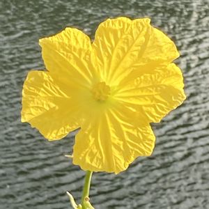川沿いに咲いていた黄色いお花🌼 ハテハテ、何というお花でしょうか❓ ヘチマさんでしたね〜💛