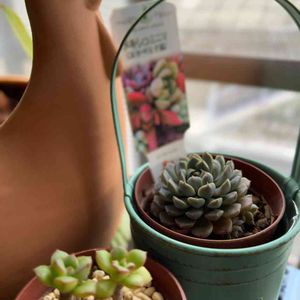 不織布などの囲いの中に潜って、 全多肉に水やりした🌱 メキシコミニマさん 画像で伝わり難い 仄かな紅葉色😚🍒