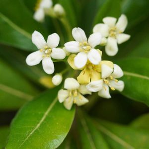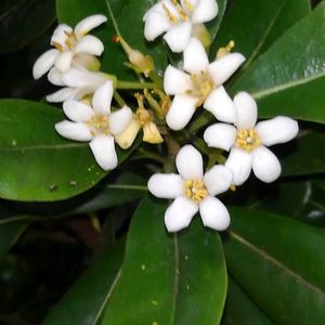 市役所そばの公園の生垣に…。 白い小さなお花が集まって咲いています♡ 2025.5.15 トベラと教えていただきました🌿