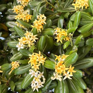 初夏を代表する植栽花の一つである 「トベラ」で、おはようございます🍃🌼🍃 遠目には一瞬、「シャリンバイ」の花と見間違えそうになりましたが、随分豪勢に咲いているなぁと近づいてみたところ…やっぱりトベラでした😃💡 トベラは、日本を始め、韓国、台湾、中国南部などの主に海岸地域に咲くトベラ科の常緑低木🌊🇯🇵🇹🇼🇨🇳✨ 光沢のある倒卵形の厚みのある葉と、枝先に寄り集まるように咲く仄かな芳香を漂わせる白い5弁花をつけ、咲き進むにつれてより黄色みを帯びてくるのが特徴の雌雄異株です✨♂♀🍃🌳 かつては日本で、節分の日に魔除けとして扉に挟む風習があり、これが和名の"トベラ(⇨トビラ⇨扉)」の由来の一つになったという逸話を今回初めて知りました。 ネーミングにおける日本語のこういうアバウトでテキトーなところも、面白いですね🤭 ー花言葉は、「偏愛」、「飛躍」…他。