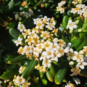 トベラの「トベラ」という名前は、「扉の木」が転訛したもので、節分に門扉に挿して魔除けとして使われたことに由来します