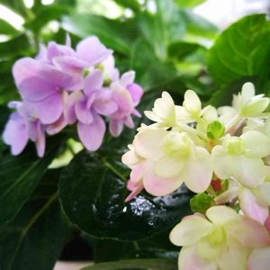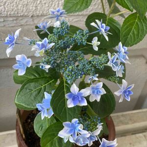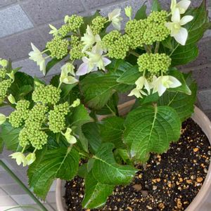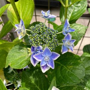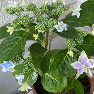 来期用で購入した紫陽花に花が咲きました。それも2種類😅 色、形、大きさが寒さのせいなのか出来ていません。 台風も去ったので少し暖かくなり咲ききるかなぁ❓😳