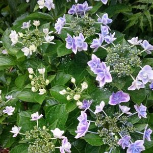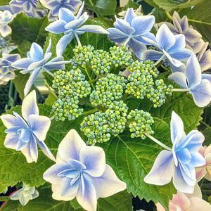 青のアジサイ達が色付いて来ました。やっぱり蒸し暑い梅雨は青い色が涼しそうでいいですねー^o^。スターリットスカイ、去年シーズン終わりに迎えた花びらと葉がギャザーのようになっている花は楽しみにしていました。^o^