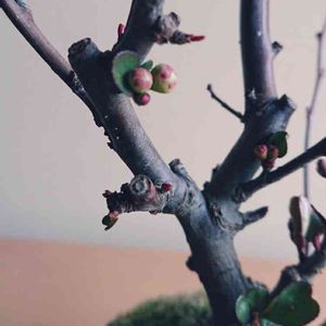 昨年ホームセンターで買ったボケの鉢 盆栽仕立てにしてみたけど…花咲くかな…❔
