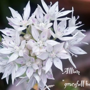 アリウム グレイスフルビューティー 3㌢くらいの小花です。 青もあったんだけど 今年は白だけ咲いてます。