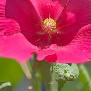 おはようございます。 いつもお世話になっている クリーニング屋さんの店先で。 「今日のお花」 燃えるような色の タチアオイが咲いてます。