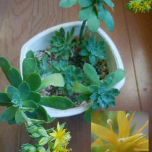 「多肉植物」 昨年友人より頂き挿し芽しいつの間にか花が咲きました🌼 多肉植物の名前が分かりません🌿 わかる方教えてください💞