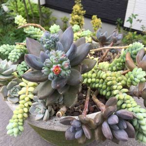 多肉ちゃんに咲いた花に癒されます◡̈❁