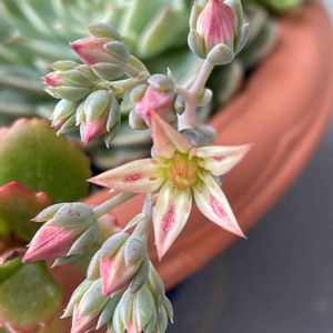 名前が分からない多肉さんに花がさきました🌼 多肉さんの花は意外と可愛らしいですね💕(* ॑꒳ ॑*)