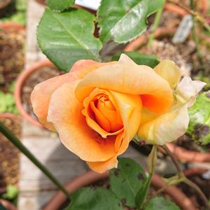 #万葉 真っ赤な蕾から始まり、開くとオレンジ色そして、黄色にと色の変化が、楽しめるバラ。
