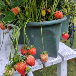 5/9 苺🍓とちおとめ🍓一粒収穫 ①真ん丸真っ赤な苺🍓 満開のオステオスペルマムピンクオーピットとパチリ✨ ②朝食のフルーツヨーグルトの真ん中に添えてみました🍓 バナナ🍌大粒ブルーベリー🫐と、 さくらんぼみたいネ🤣 ③先日頂いたバラ ゴールドバニー💛とパチリ✨ ④一口で食べちゃう大きさなので… あっ❗️ちょっと待って✋ 中はどんなかな? 🔪🍓カットしたら、中も紅くみずみずしい断面をパチリ 今年、お初の苺🍓は、ちょっと酸っぱいけど、苺の味が濃いめでした