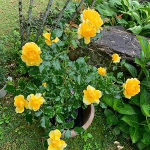 ゴールド バニー (Gold Bunny) 🇫🇷 四季咲きでいっぱい花をつけて、トゲが少ない良いこと尽くめの花ですね🥰💕