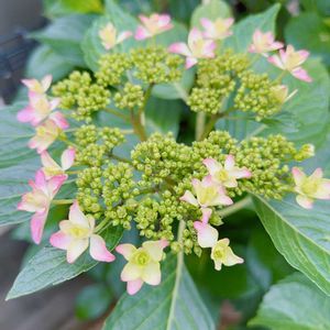 今日から6月 アジサイの季節到来❣️ 庭の「ダンスパーティ」が咲き始めました🩷 昨年はたくさん咲いてくれましたが今年はふた周りくらい株が小さくなってしまいました⤵️ お花の大きさも小さくなりました。 昨年の猛暑の影響ですかね🤔💧 それでもかわいいお花を咲かせてくれて嬉しいです🥰💖