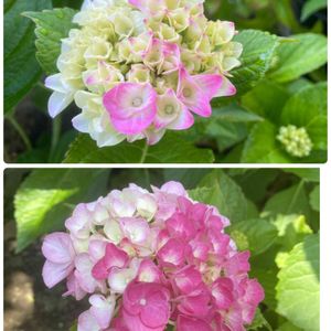 🩷🤍アジサイ スズカパール🤍🩷 ランダムに絞り模様が入る特徴があり、てまり咲きの紫陽花です ⬆️初めはうっすらピンクでしたが、 ⬇️色が濃ピンクになってきました 三重県鈴鹿市の益川園芸さんの品種です めちゃくちゃ可愛い😍です✨✨ 2枚目は🩷ダンシングパーティ 装飾花が八重咲きで華やかな雰囲気です❣️ 中心の両性花が咲き出しました 今日は真夏並みの温度になるとか😨 温度変化に気をつけてお過ごしくださいね💓