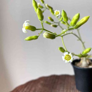 チレコドン・レウコスリクスの全体像。小さな株のわりには長い花茎を伸ばして花を咲かせませす。冬型なので花が咲き終えたらお休みです。