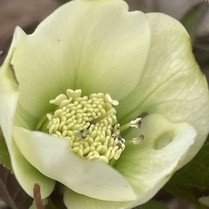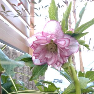 我が家の クリスマスローズ つぼみからの開花 待ち侘びました やっと 第一輪咲きましたヽ(´▽`)/ あっ‼️右側花弁に穴🕳️ 誰? 食べてしまったのは😱🐛 クリスマスローズ