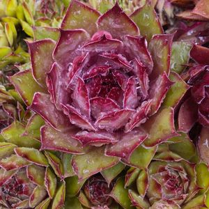 綺羅びやかなお嬢様 センペルビウム・クスビッタツムさん😻💗💜💚🤍💛 ガレージも端の方は☔が吹き込みます👀💧 そろそろ蒸れを意識して内側に移動かな?…と思うと 涼しくなり…😸💧 ここ数年 気候が変わってしまい 判断が難しい…👀💧💧