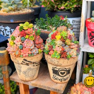 今日の多肉ちゃん オーダー2種類 渋め鉢ヒスミニとピンク系黒猫ちゃんで 作らせて頂きました( ˊᵕˋ*)💕 どちらも好き♥️