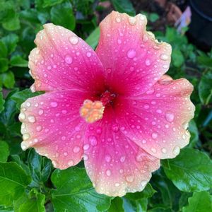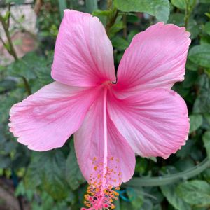 越冬したハイビスカス。 ピンクバタフライちゃん、やっと1輪目咲いてくれました。